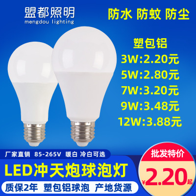 led燈泡12w 家用照明塑包鋁球泡燈e27螺口暖白節能燈泡廠家直銷