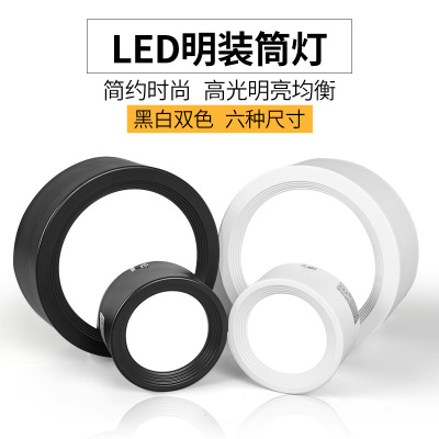 酒店防霧筒燈圓形黑白色防眩高亮吸頂筒燈免開孔 led明裝吊線筒燈