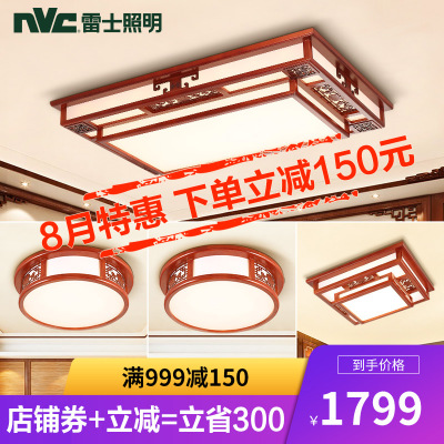 雷士照明LED新中式木藝客廳吸頂燈大氣家用臥室燈具燈飾